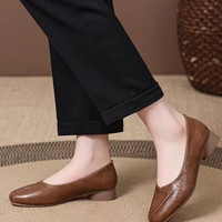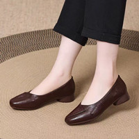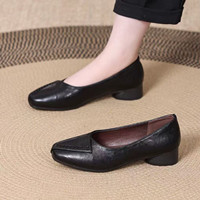 2025夏季新款百搭粗跟休閑媽媽鞋,軟皮軟底,氣質百搭