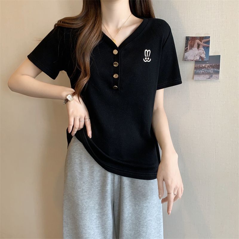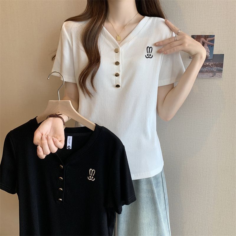 衣服穿對總被誤以為天生就瘦,微胖女生這麼穿,顯瘦又顯白, 正肩版型顯肩窄,V領修飾頸部顯臉小,舒適透氣,加長衣襬抬手不露肚子,寬鬆不挑人,百搭各種裙子褲子