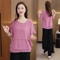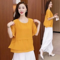 韓版圓領輕奢寬鬆小衫 優質雪紡衫布料 柔軟舒適 品質可放心 不挑年齡身材