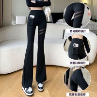 2025春夏款高腰彈力口袋字母微喇褲 薄款網紗 提臀顯瘦鯊魚褲芭比褲