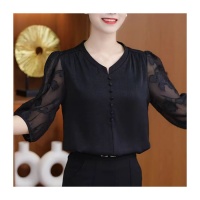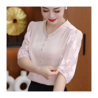 時尚七分袖雪紡襯衫 減齡時尚 立體裁剪 不挑身材不挑人 遮肉顯瘦~免燙抗可機洗 不起球不掉色