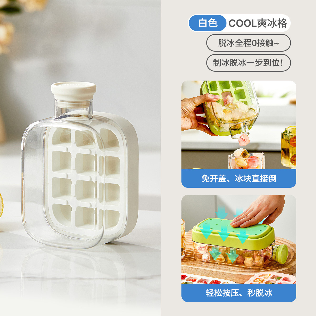 新潮COOL爽冰格模具,戶外運動,高顔值便攜吸管杯,按壓脫冰冰塊冰壺