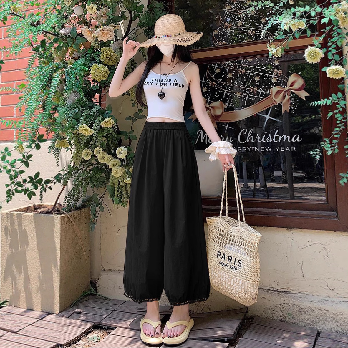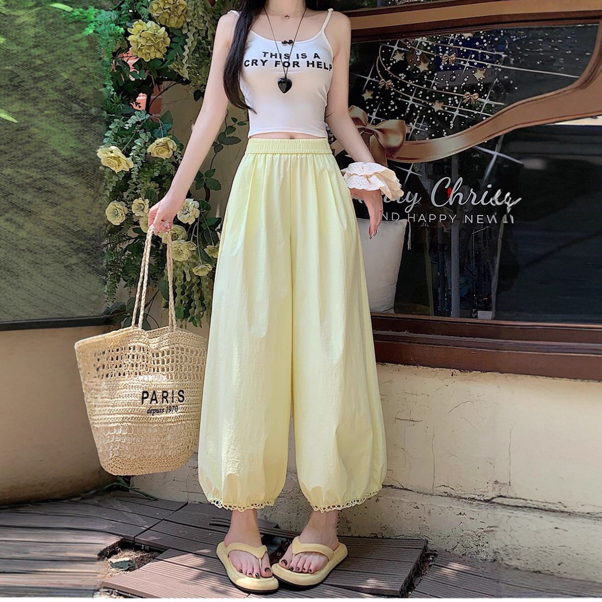 【鏤空花邊九分褲】冰感棉麻材質+鏤空花紋設計,38с穿也涼颼颼~拉長腿部線 條,小個子也能穿出超模比例!
