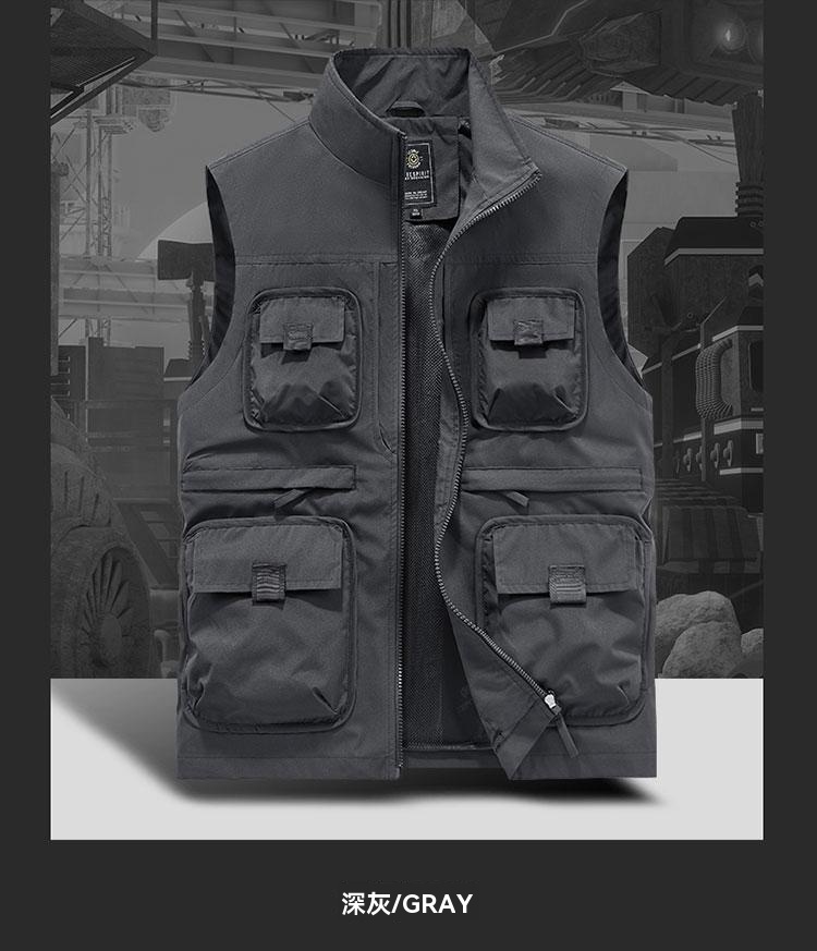 【秋季爆品】新款馬甲男工裝拉鏈多口袋透氣外套春秋坎肩戶外背心